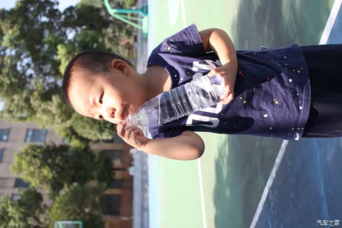 喝口水,还不准我给他拿瓶子,说自己是大人了,哈哈。