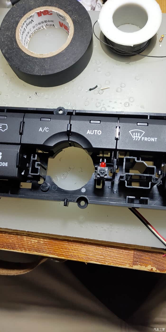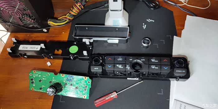 这个是导航下面的中控,为了找个按键位置,这个中控拆了3-4次。最后确定还是空调旋钮旁边这个空按钮