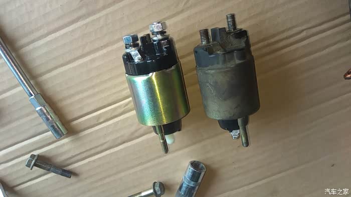 插曲:新磁力开关上面自带了两颗螺母,都是13mm,而原车的磁力开关与电机连接正极线螺母外径是12mm,而螺纹直径是一样的。这里我用了新的螺母