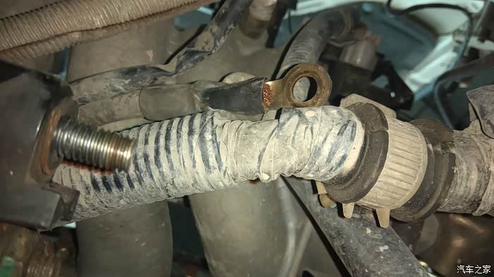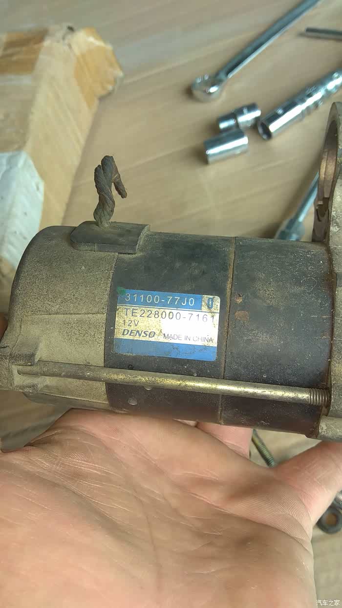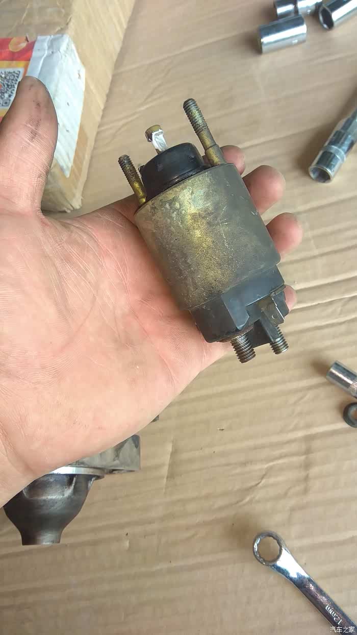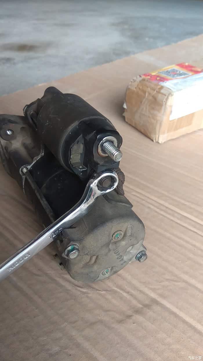 拆下磁力开关与启动电机的正极线,原车12mm螺母