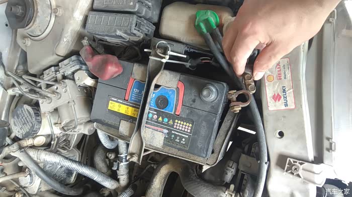 底下垫张纸板,人钻进去把正极线螺丝拆下及拔下负极插头,13mm螺母