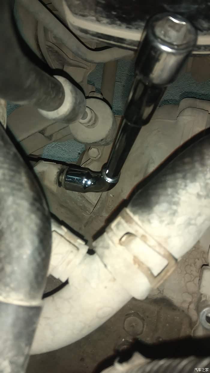 靠上这颗用烟斗型扳手的较长一端来拆,尾部加个套筒,这样有力