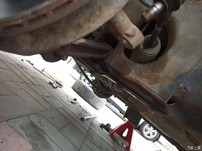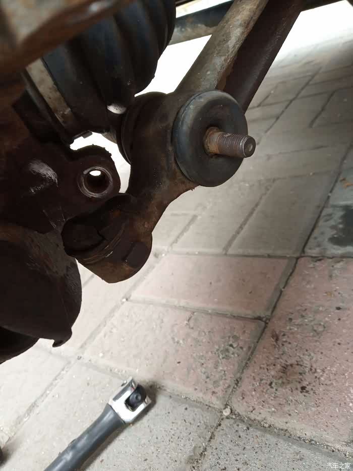 下支臂是实心的,看来一手车主早已经换过。这就面临着一个问题,螺丝紧度一定贼大,这帮修车的没有力矩的概念。
