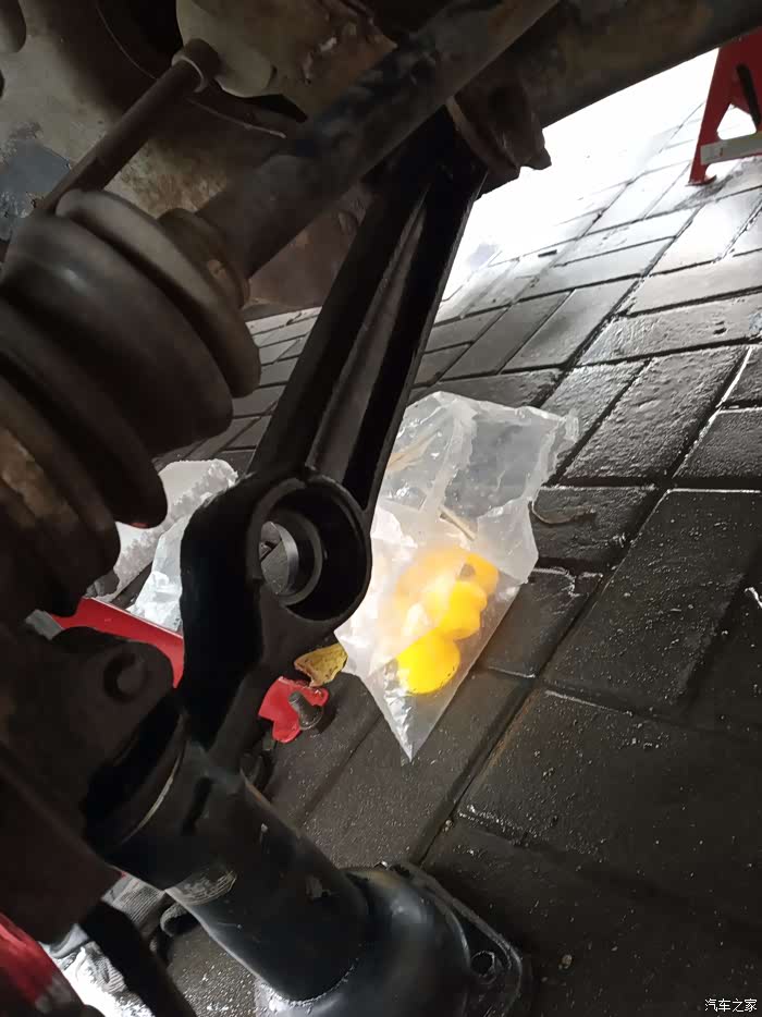 下支臂防尘胶套早已经破损了,但因为懒始终没有更换,要做的始终逃不掉,于是选了一个黄道吉日开始折腾。