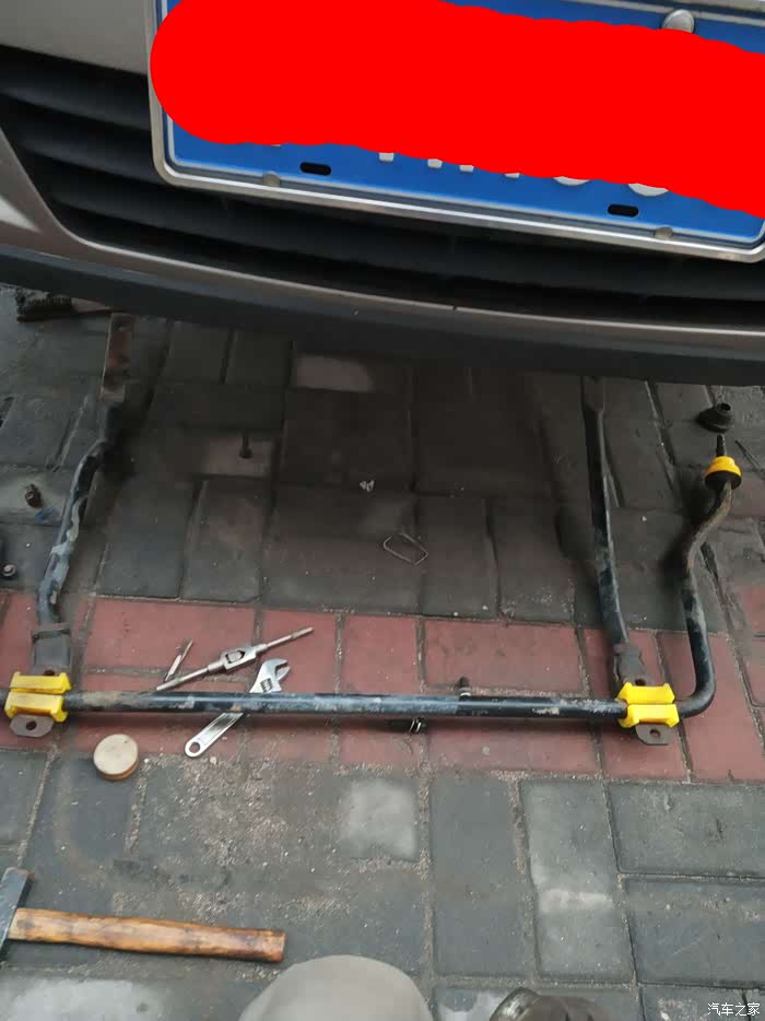 整套稳定杆就是这个结构。安装的顺序是先装稳定杆,然后再安装两边的托杆。