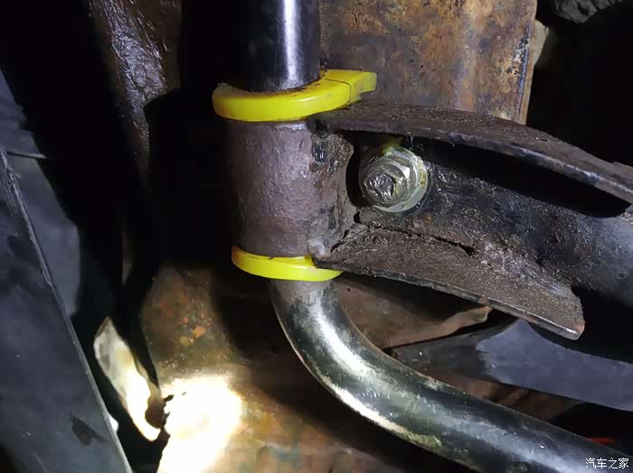 这是横稳定杆前端两个托架,螺丝有的已经锈了,被我用力一拧竟然断在里面。
