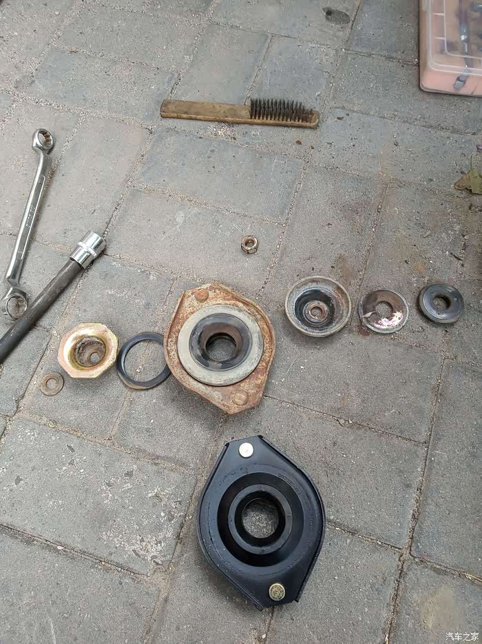 我的小五前面两个胎一直偏磨内面,内外差别很大,想着已经快六万公里,减震顶胶一直没有更换,那么这个有可能会造成轮胎偏磨。找了些资料现学习一下说干就干,今天把作业过程发上来分享一下。