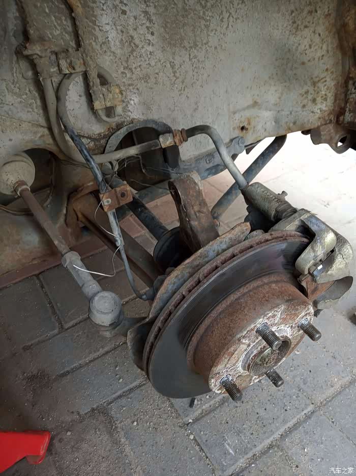 好容易搞下来的。我用了铁丝绑住托架,防止半轴脱出漏变速箱油。
