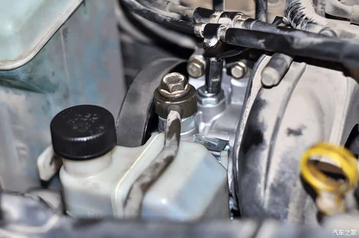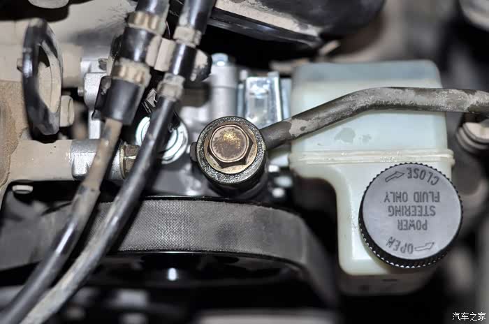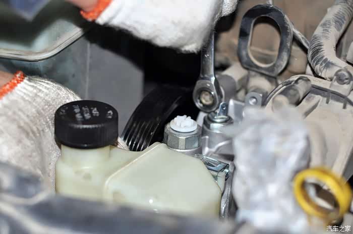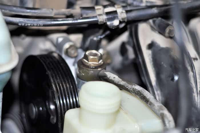 因为我的助力油是新换的,所以要求小哥保留助力壶内的油,这样需要拔管路时注意堵住油口。