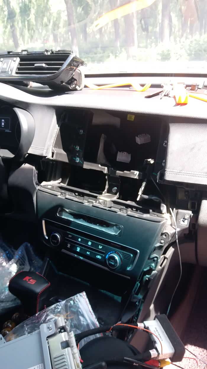 三、更换过程:导航都拍了,自己就找安装的店铺,微信有个认识的搞装具的,和我要安装费180元,我晕,你咋不要个车钱,世界的钱都给你吧,为了检验自己的动手能力(呵呵,其实为了省钱),于是自己从网上花8.8购买的拆卸面板的工具,翘板啥的,自己找个凉快的地方开拆,论坛里面有很多拆装中控的教程,开始摸不到方法,吃力,不过卖家发来了拆解视频,还有最重要的有个本地车友前些天买的哈曼的导航也是自己换的,在多方指导下,自己终于拆开了,那个狼藉呀,拆过后觉得也没有那么难,主要是更换usb接口电路板费点事,这里一定要感谢好兄弟指导,用了大半天终于更换完毕。四、使用体会:移植的kx7的导航,音质非常好,我觉得再比这好的就是哑巴机了,不过那不是1000多就能解决的事了,读u盘、蓝牙电话、蓝牙音乐、倒车影像、最重要的百度carlife都非常好用,苹果的carplay没试,关键咱没有苹果手机呀,媳妇的苹果4s早不知道扔哪去了,最喜欢的就是屏幕关闭的时钟屏保,上档次(个人认为),原车导航带的贴膜上面带说明文字,很碍事,这两天网上买的专用的8寸钢化膜,今天贴上了,很好。总结:总体非常满意,不足吗,就一点,倒车影像稍微比我原来wince的杂牌导航清晰度差点,但是也完全够用,也可能是我后配的摄像头的问题,总之本次更换导航非常值得。