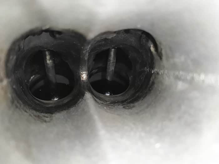 先后试了洗料和甲苯,感觉还是甲苯清洗效果好些,这是清洗完的进气口,本来想把气门也洗洗,但是实在洗不下来,估计高温把积碳都烧死了。