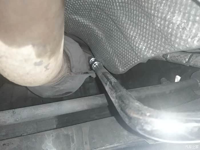 先拆掉和消声器连接的螺丝。用除锈润滑剂,轻松。
