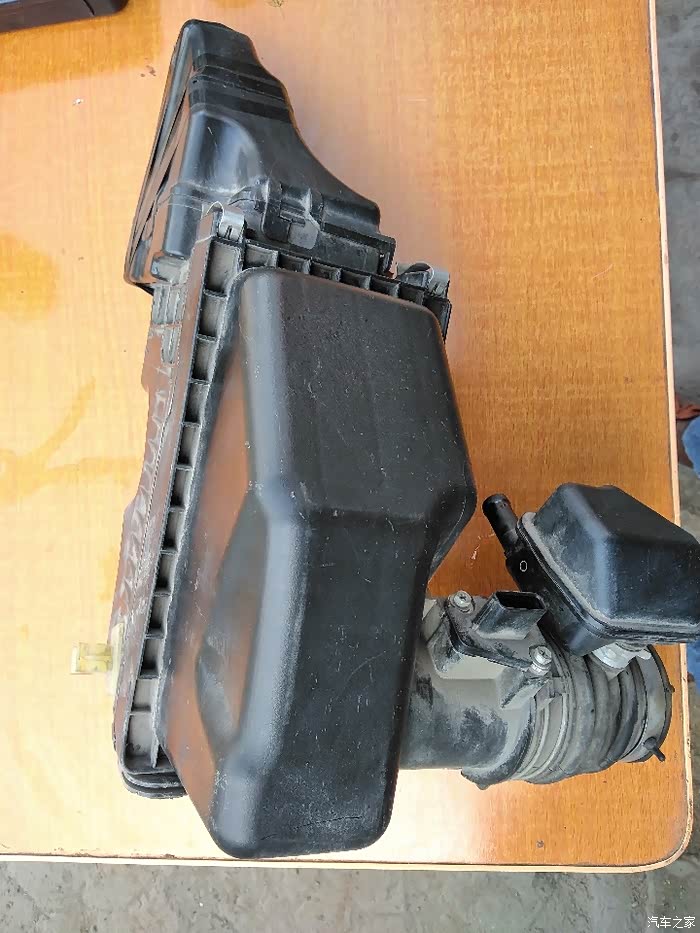 拆掉空滤总成。也是2个10的螺丝。用一字螺丝刀松开卡扣。拆下的空滤总成。