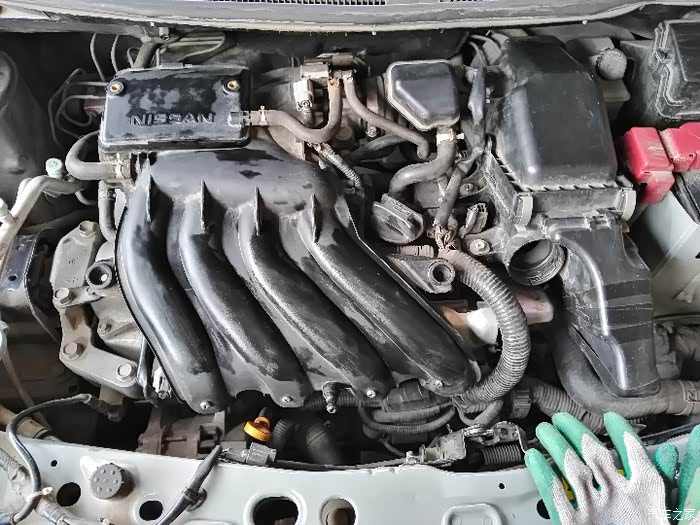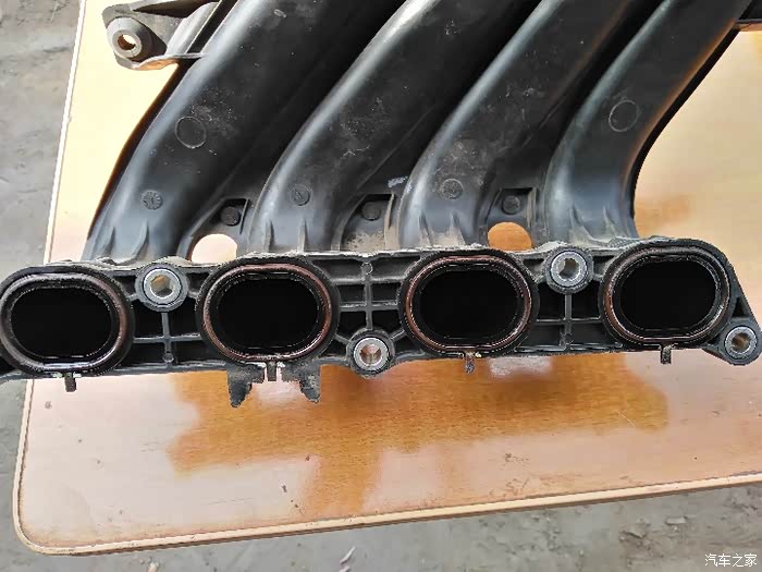 拆进气歧管,上面2个,下面有5个,不太好拆,都是10的。拆下的进气歧管。