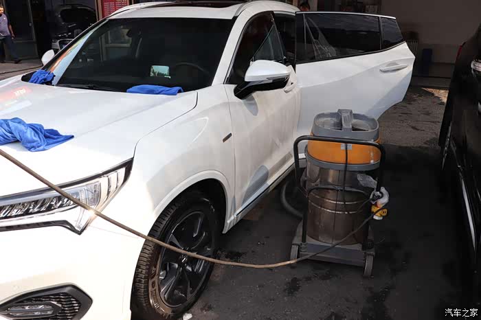 开出洗车房,师傅就过来擦拭车辆了,此时的小白已经干净许多了,上面没有了灰尘,再等一会,它就容颜换发了。