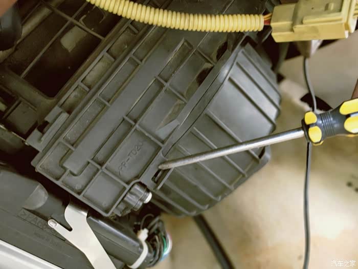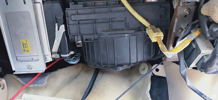 拆下手套箱,就看到空调风机了。