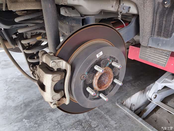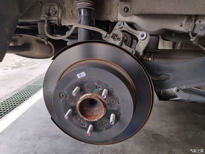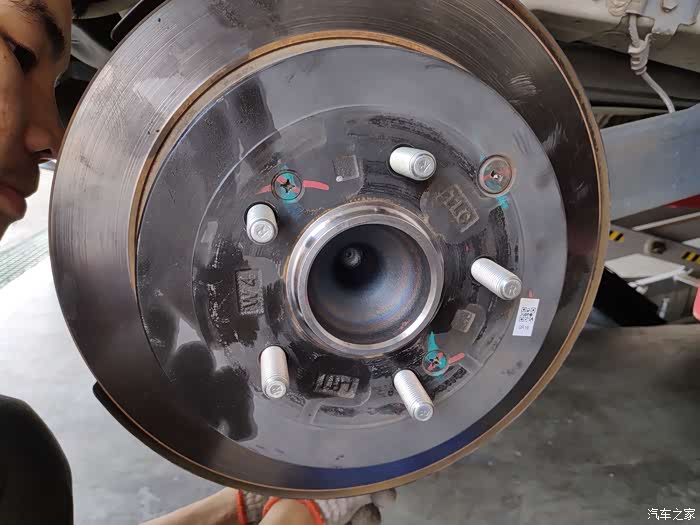 轮胎卸掉,露出要更换的后轮毂及轴承总成。