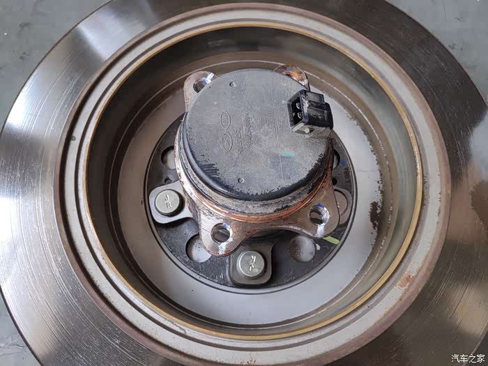再将轮毂及轴承总成拆出。这个是原车已经坏掉的。原来想将传感器部分撬出来具体分析损坏的原因,看看是质量问题还是其它原因导致没信号,无奈厂家要原样回收,拆了就不认账,只能作罢。
