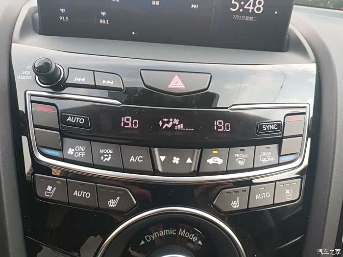 整个T字区,首先看上去相比老款车型,年轻时尚了不少,有了质的改变,悬浮式大屏,分为左右两块屏,显示信息丰富,清晰度也不错,空调依然用的是真实物理按键,我很喜欢,因为用起来直接,操作方便,还有四种驾驶模式可供选择,根据不同路况,可以进行不同的切换,档位是按键式的,熟悉之后会感到很方便,而且很显档次,档位后方有块触摸操控台,跟大屏相对应,也分为左右两块,敏感度也还不错,而且有震动反馈。