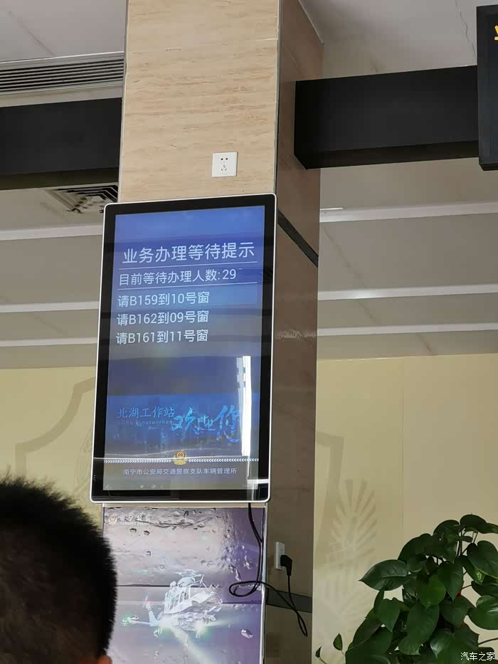 车子查验拍照结束后,到大厅跟工作人员说弄好了。他们就会给你颁发排队的号码,你只需要按兵不动等待叫号即可。等到叫兽拿号时,前面还有50多位办事的人员,这种情况只能硬等了,别无他法!