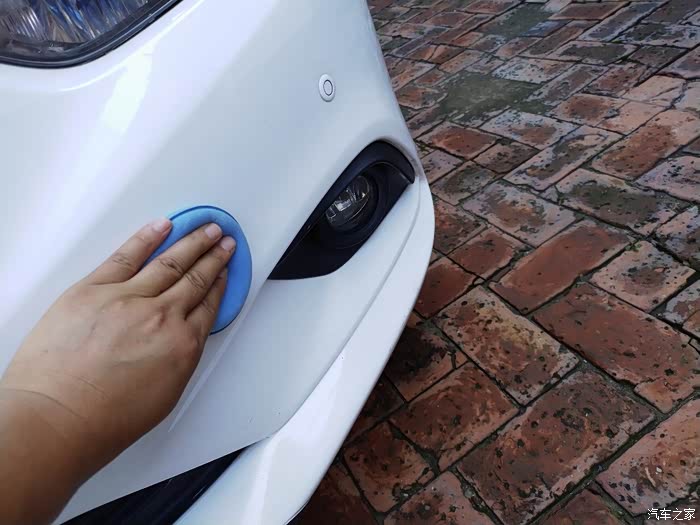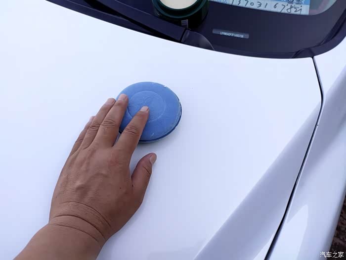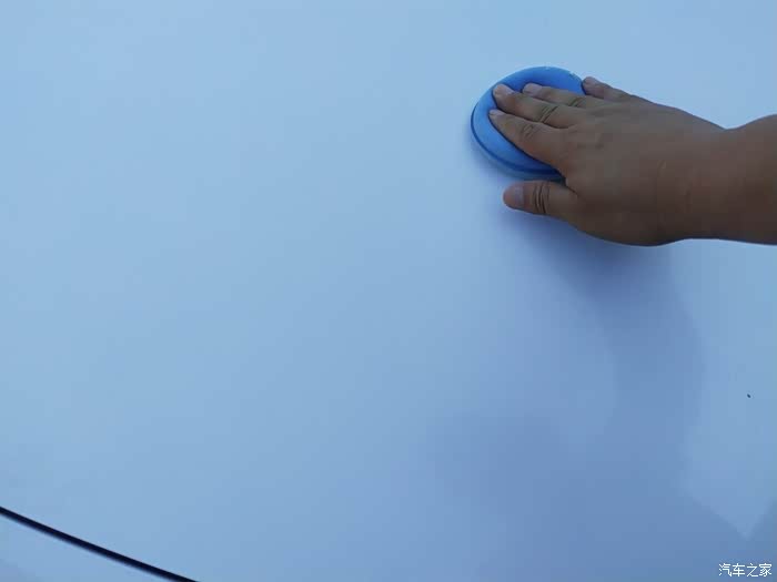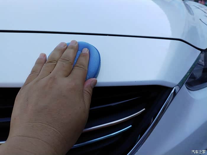 用固体车蜡专用的圆形海绵蘸上车蜡,均匀地涂抹在车漆表面,不需要涂太厚,薄薄的一层即可。在涂抹的过程中,可以用海绵均匀地在车身上画圈,使车蜡在漆面上呈现出鱼鳞状效果。