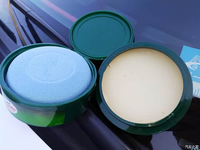 涂抹完毕,稍等5-10分钟,使车蜡充分干燥。同时,剩下的车蜡盖好盖子以备下次再用。