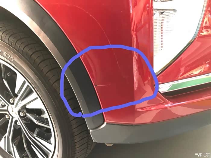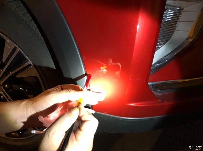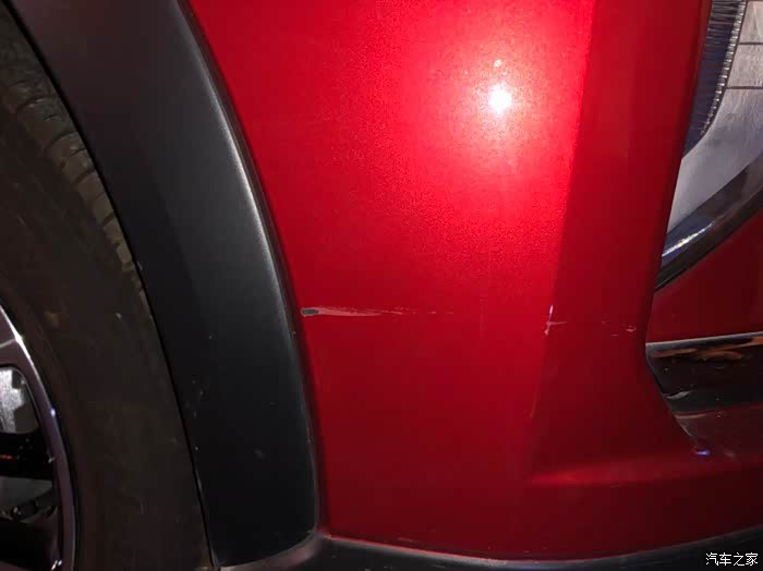 就这个地方,不是特别明显,但是也算有条疤痕,看着爱车受伤破相还是非常心疼难受。