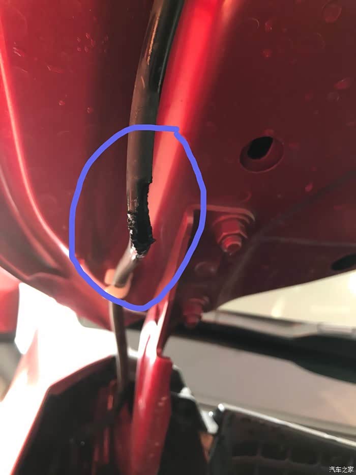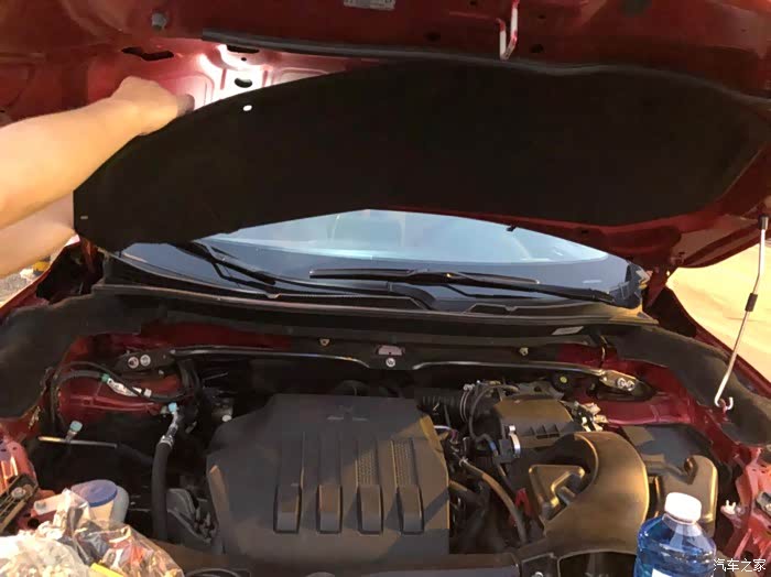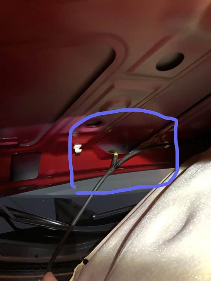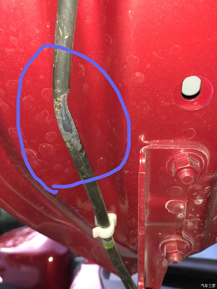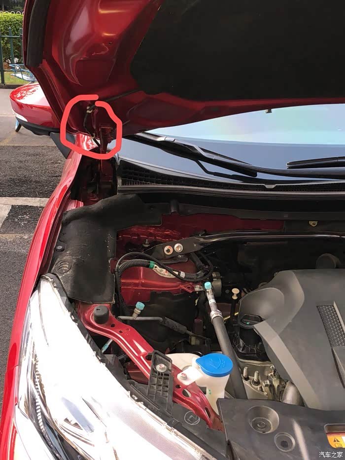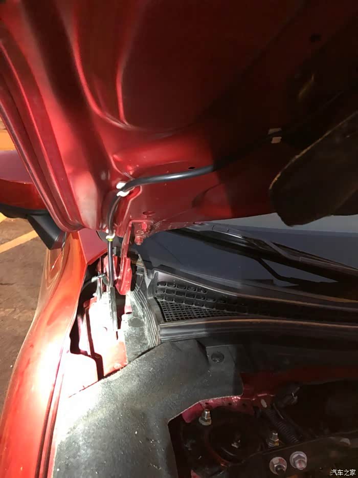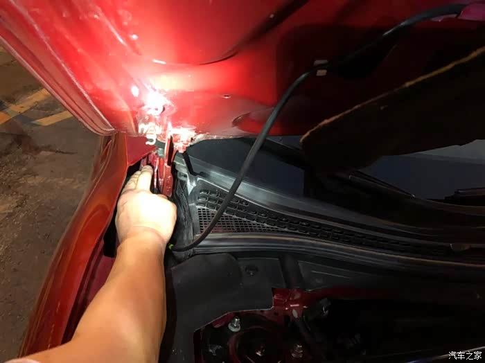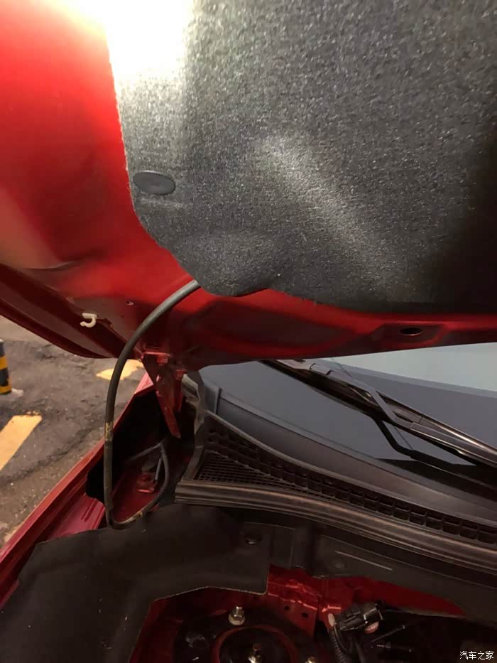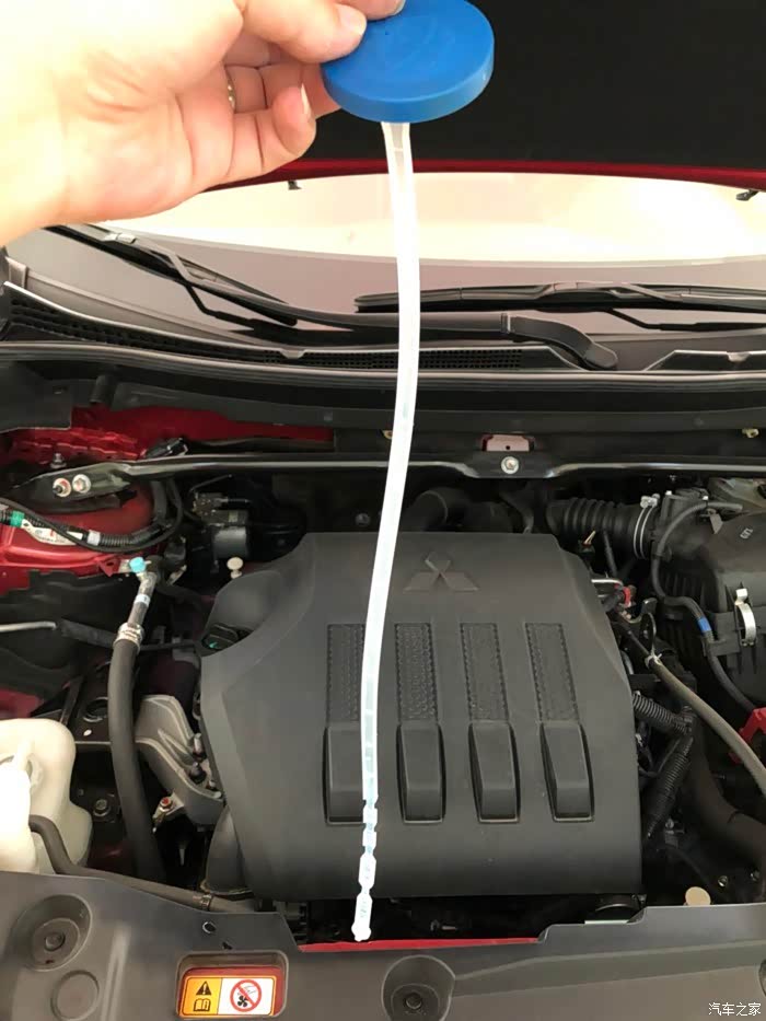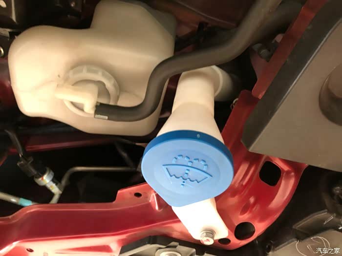 我开着引擎盖再试一下喷水雨刮,结果发现异常了。