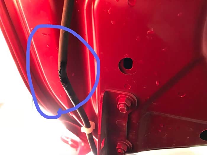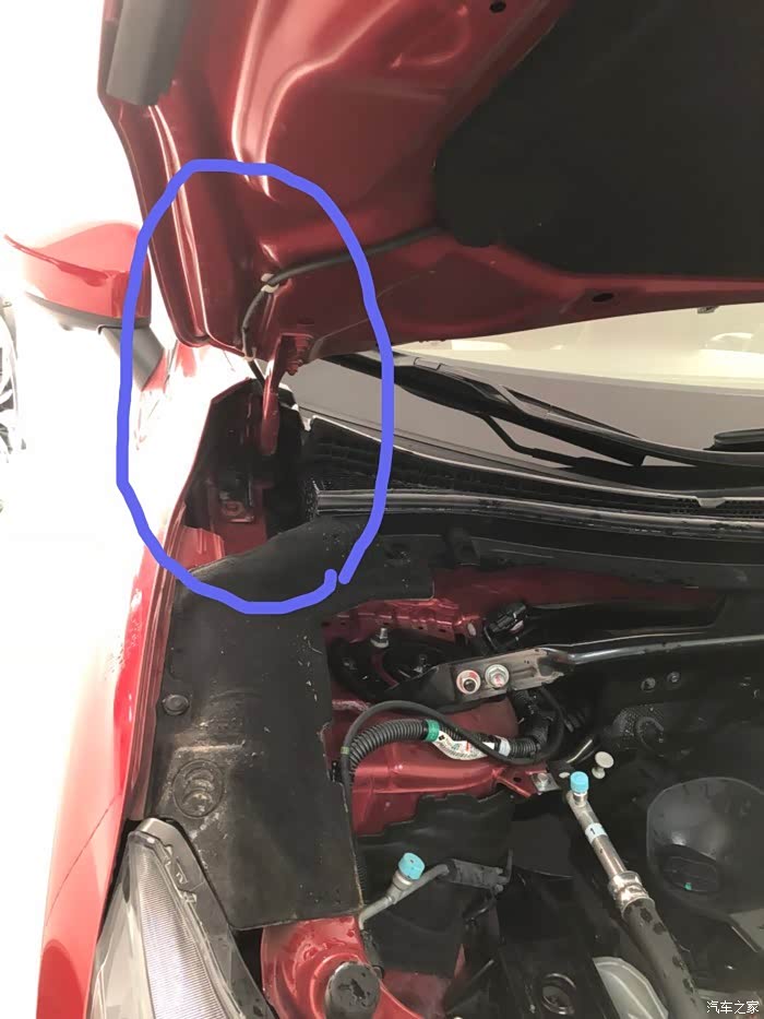 调整一下,卡好,避免关引擎盖时压坏新管。