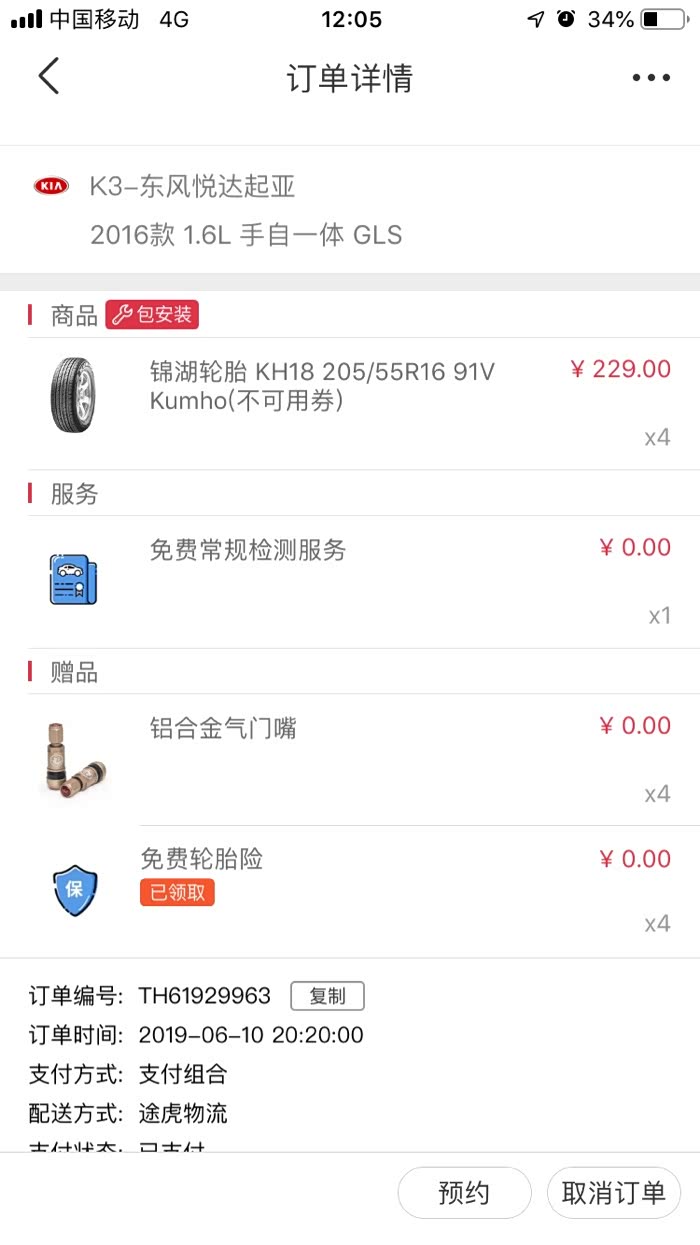去年6月换的两个前胎,昨天上班时老婆发来的照片,心情那个差啊,能怎么办,老婆大人啊,看了下里程5万3快到了,那就全换吧,昨天晚上就在某虎app下单,今天快中午到店,电话联系下午安装,赶上今天正好休息,索性我就一步到位吧,老婆大人只负责开车就行,保养,保险都是我来办。价格229*4=916,到店安装朋友圈发帖集赞返16,相当于900四条,上下班开,也没必要用好的,老婆说了,车就是交通工具!