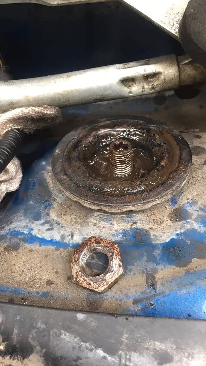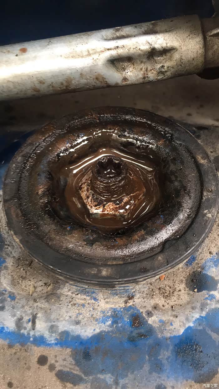 拆减震固定大螺帽。这样要注意。只拆螺帽,不要去拆螺杆,因为螺杆是花件卡的。更不要用风筒去打螺杆,包你报废。