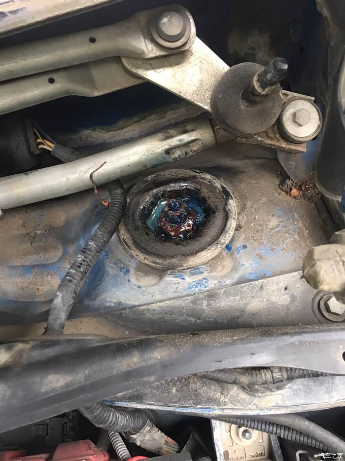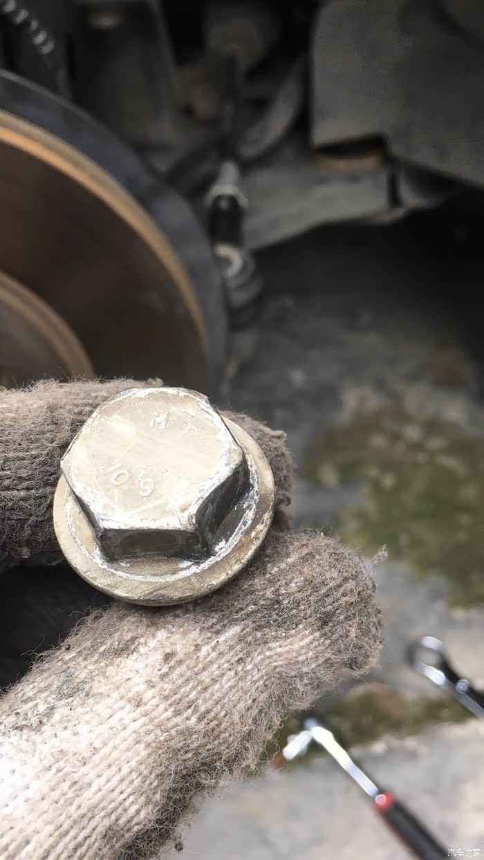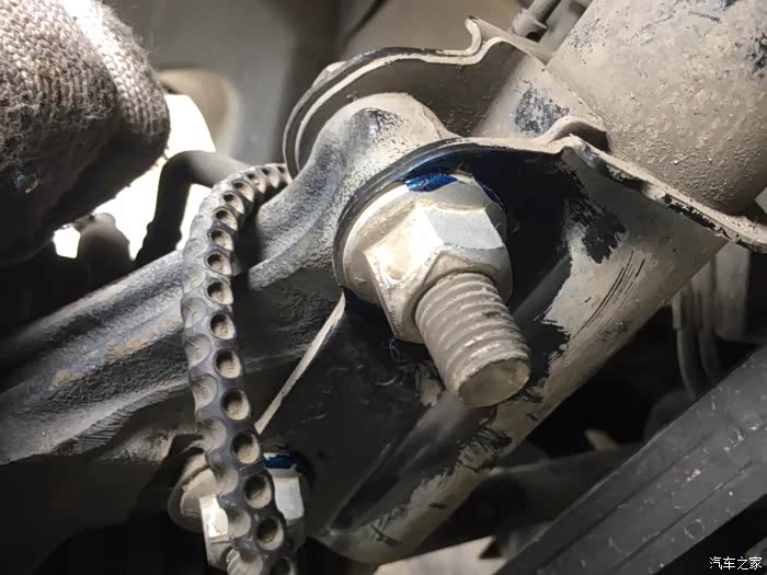 因为发动机减震螺帽生锈,导致断裂。