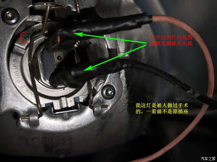 接电源。注意,H7灯带的电源是有极性的。先在灯腔外点亮一下,保证H7不是坏的,或极性没有搞错。请问下各位老师,卤素近光灯泡没有极性吗?