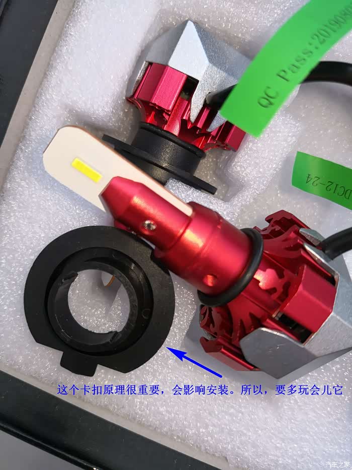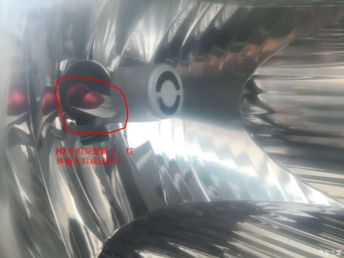 纠正:因为第一次安装,把H7黑色卡扣错误了,所以,上图看着灯芯的姿态不对。