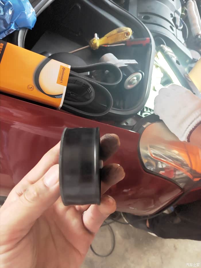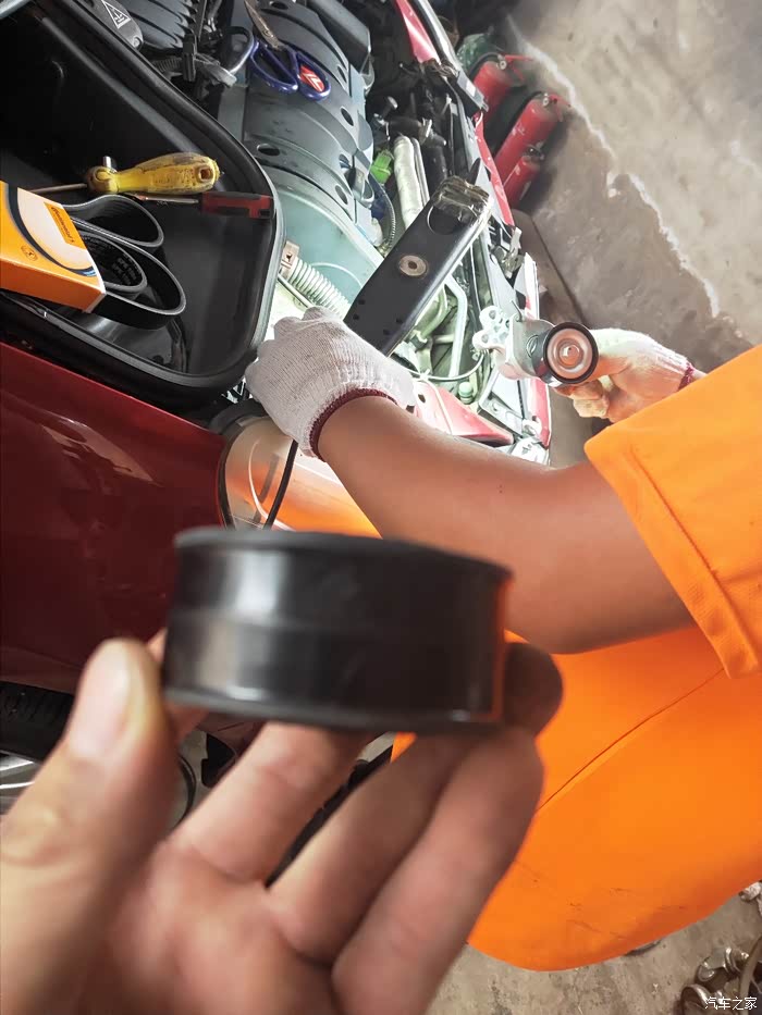 堕轮也是一样中间高2面低,皮带被轮子咬的分开了,导致皮带变宽磨损正式皮带塑料壳子。所以最好一套一起换。同时把机油换了。最近很忙就去了朋友这里毕竟工具全,一共收了60块钱。这里感谢207论坛班主和坛意见