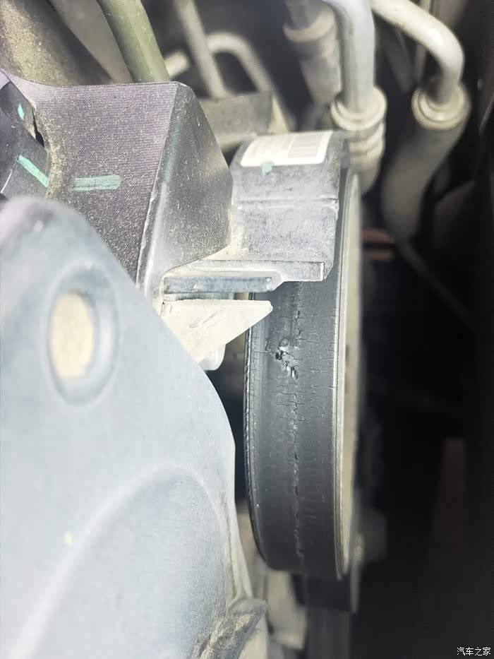 看好皮带绕法,拆下皮带,13的小飞↑提涨紧轮需要+力很轻松拿下来旧的皮带
