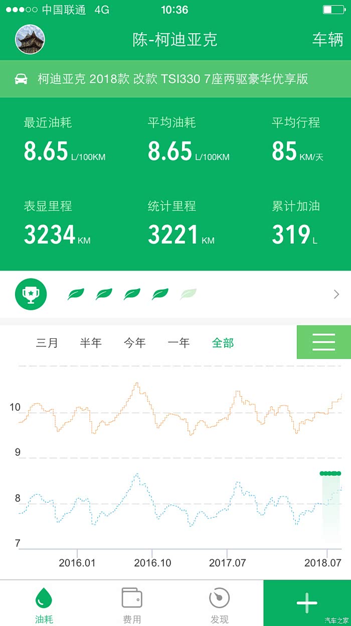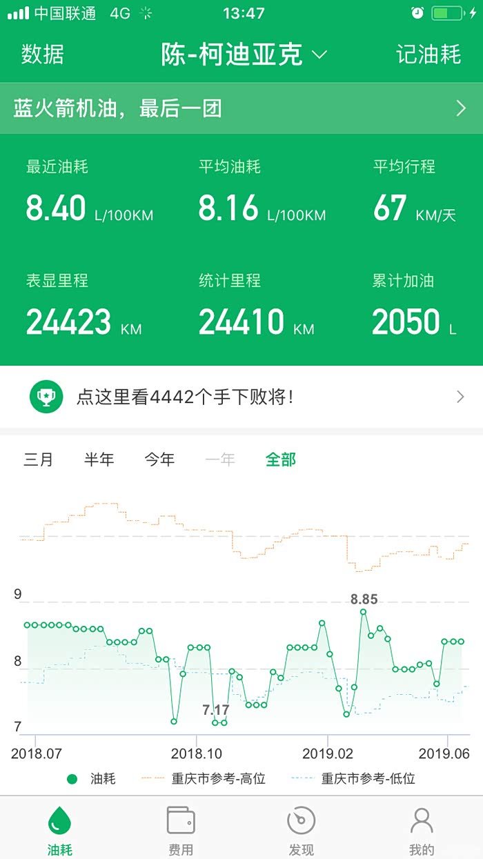先来张“小熊油耗”APP统计的油耗,后面有车辆行程电脑的油耗数据哦