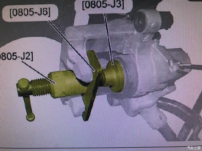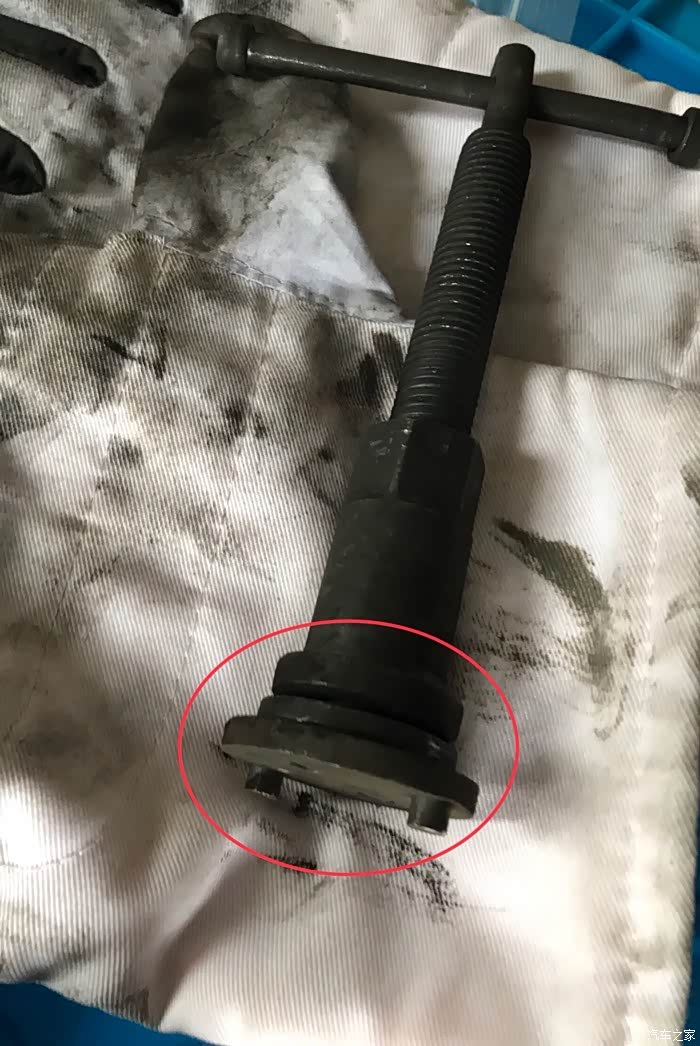 红圈部分顶在刹车分泵活塞上然后顺时针转动,活塞就会缩回去了。