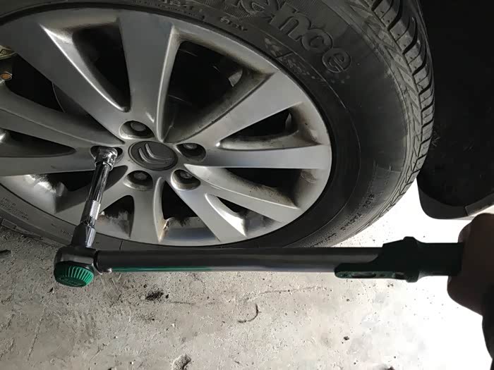 这里大家注意,在外面修车时尽量少用气动扳手,因为气动扳手力矩达到了六七百牛米。哪天自己换轮胎,随车的扳手掰歪了都拆不下轮胎螺丝。