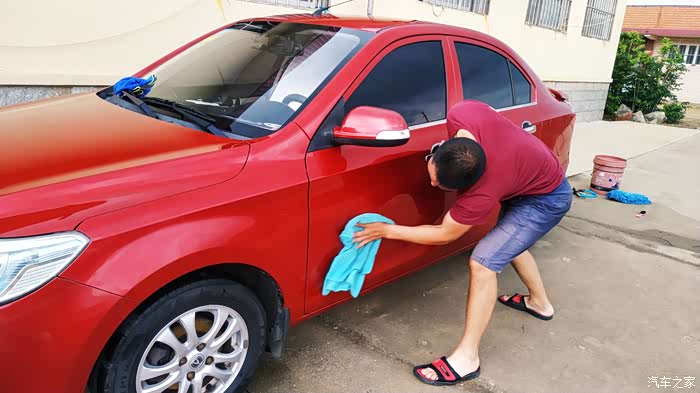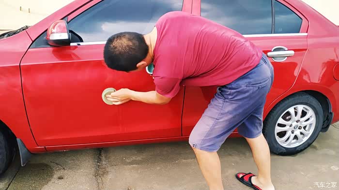 就这样围着车上一圈搞定 打蜡也是一项锻炼身体的活动,