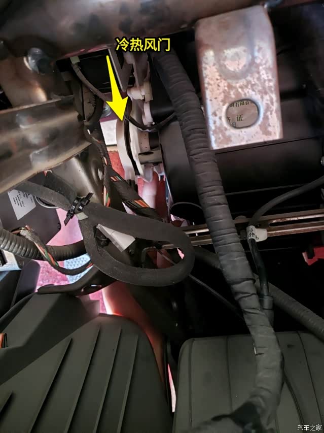 这是冷热切换的风门。转动冷热旋钮转动,发现就算把控制面板的旋钮旋到冷风到底,里面的这个风口。还是有一点虚程,用手去转才能到底。不晓得里面风口在虚程那段风口会不会不严实没关紧,导致热风箱的热风串到风道进到驾驶室。 夏天开外循环不开空调出的风和窗外的风温度差别挺大的。窗外冰凉,而出风却有点热。有了多余的热气这就会影像空调的制冷效果