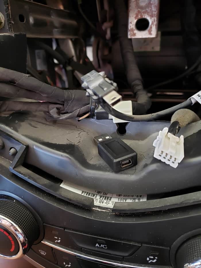 原车导航的USB是miniUSB接口,找了一个miniUSB的母头转USB公头实现无损使用原车USB接口