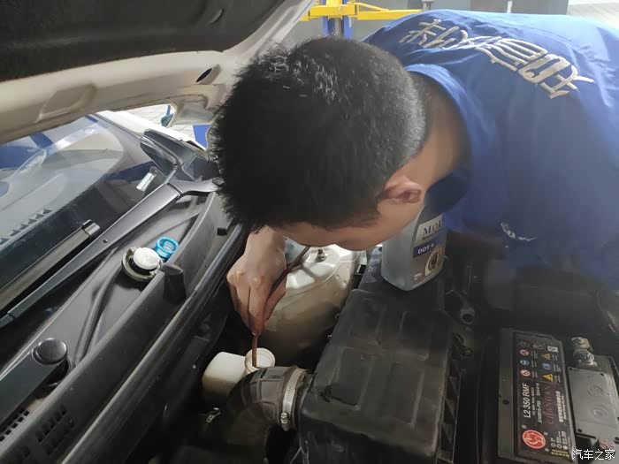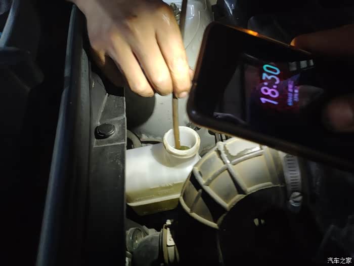 再检查一下油壶内刹车油的液位,如果低于刻度线,还要补加