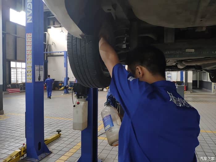 当观察颜色变浅之后,就说明轮胎已经完成换油了,其余三个轮胎操作步骤一样