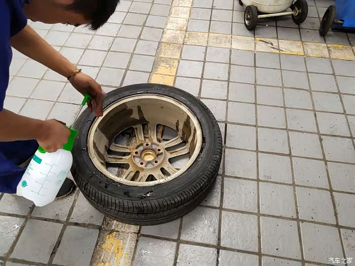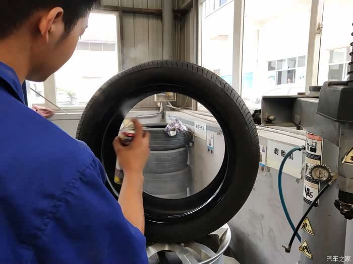 喷上表板蜡,让它在装上去的时候更加的快捷又不伤轮胎