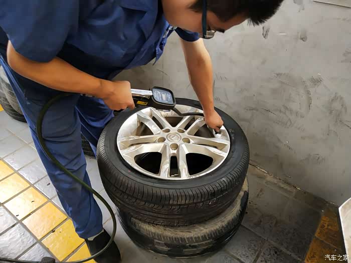 认真的监测着胎压