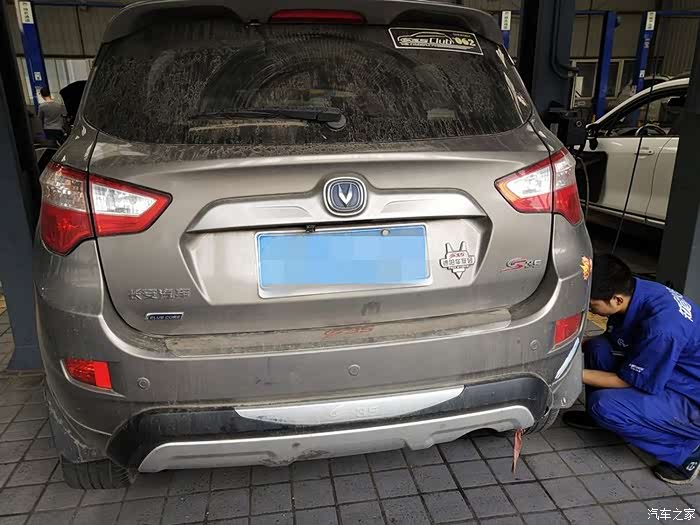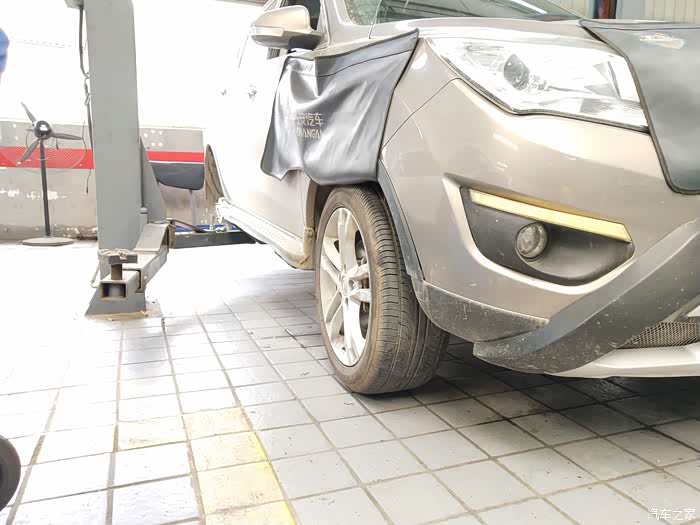 进入维修工位,先把车子的保护罩贴好,避免弄脏了车子,做的还是细致入微