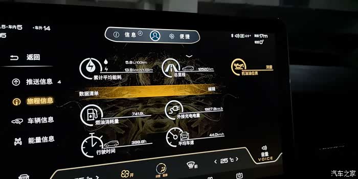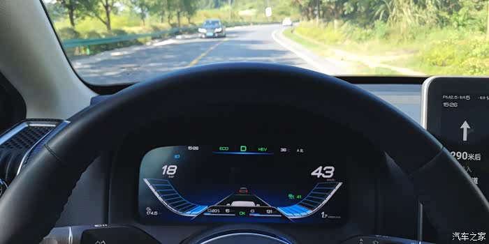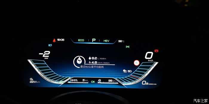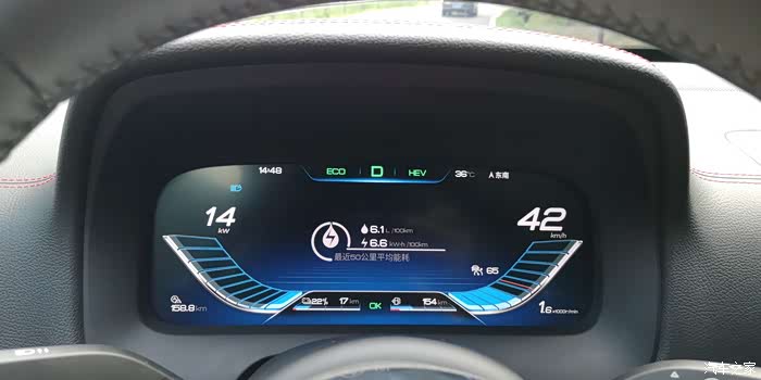 全程使用经济混动模式,由于持续上坡,电量快耗完了,目前能耗为6.1升/百公里+6.6度/百公里,非常合理的能耗。