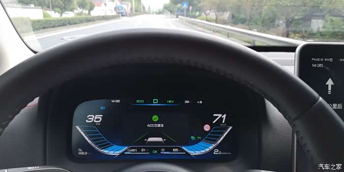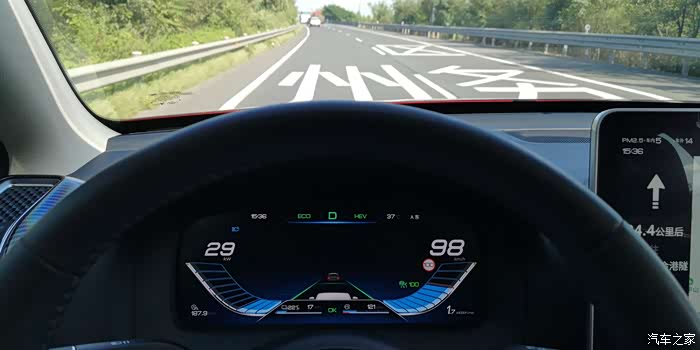 馈电状态下走高速,动力依然感觉远远不断,就是急加速时油门响应会慢一些。如果开启ACC保持匀速巡航,馈电状态下是几乎无感的。
