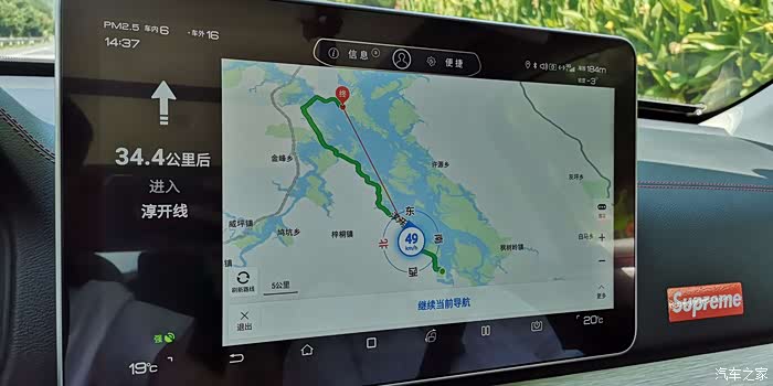 返回千岛湖城区,半路上开混动模式,因为电量不多了,还剩余19%。